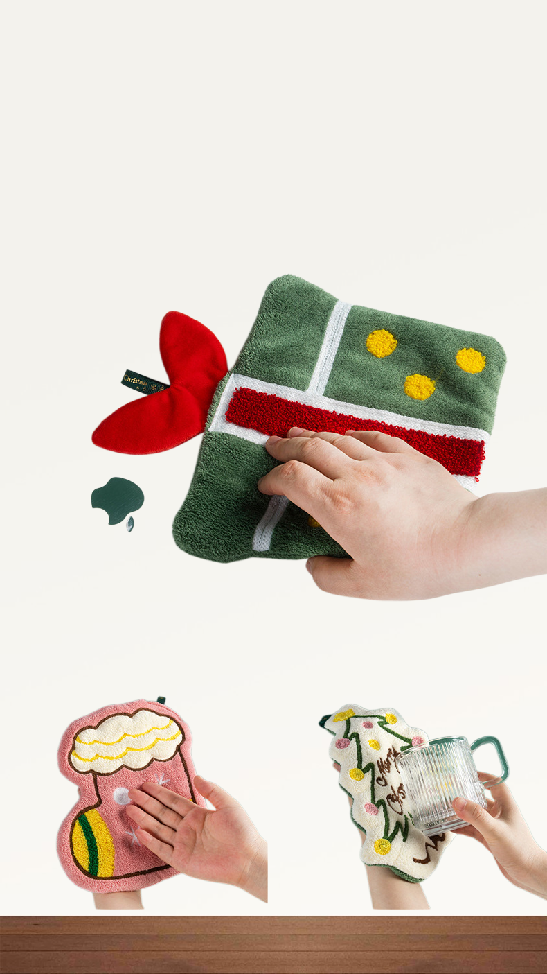 クリスマスハンドタオル、漫画風、厚手でかわいい、速乾性のキッチンタオル