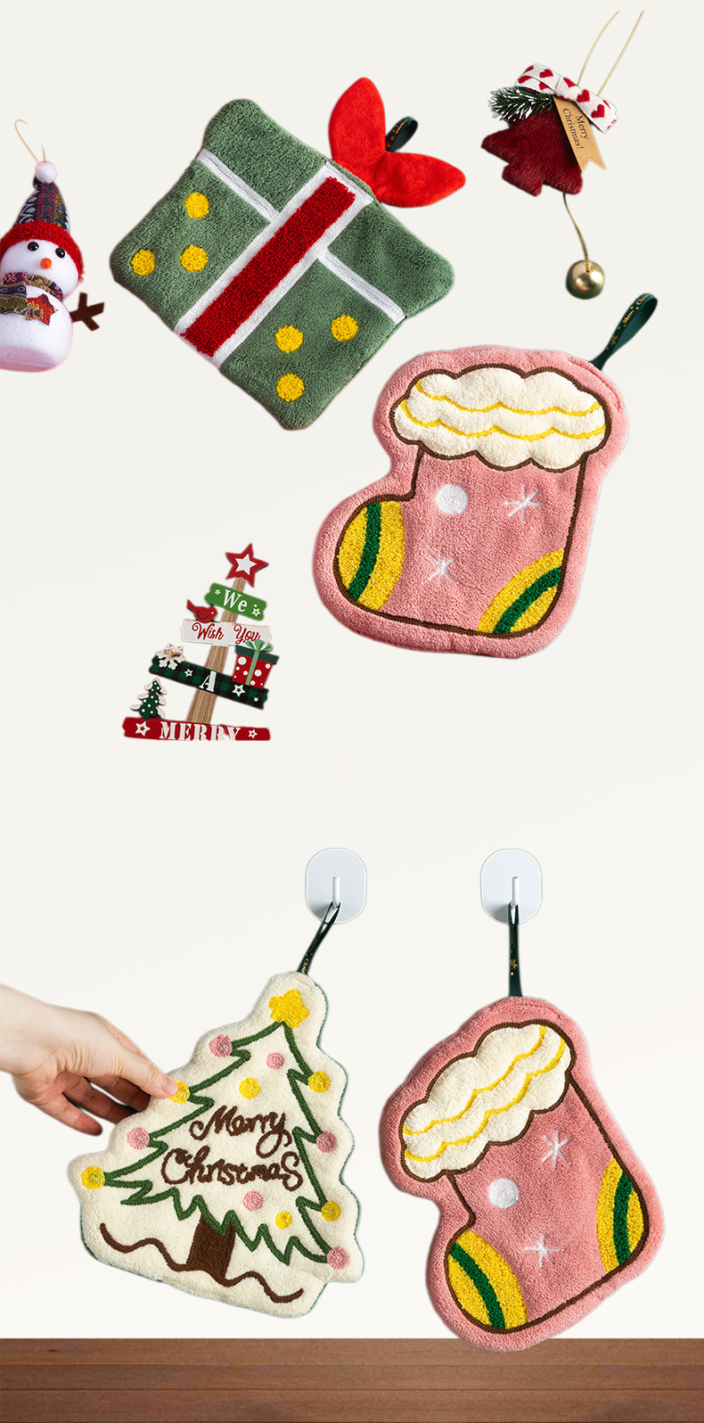 サンタクロースハンドタオル かわいい吊り下げ式 厚手速乾キッチンタオル